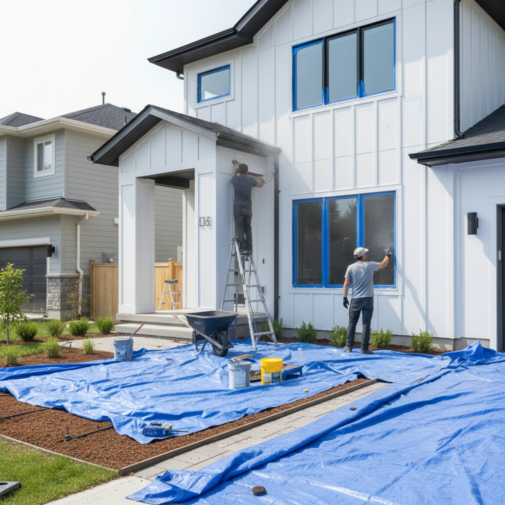 We finalize the scope—wash, scrape/sand, patching, priming, caulking, masking, and finish coats—then align on products, timeline, and weather windows for application.